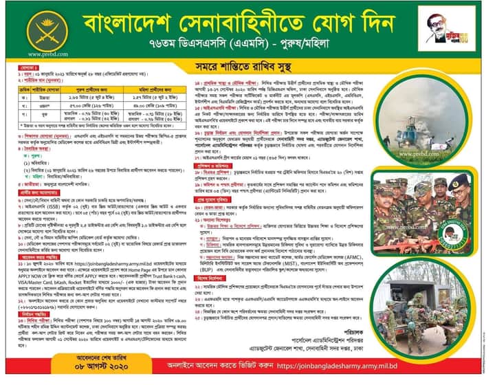 ☞☞ পদের নামঃ ৭৬ তম ডিএসএসসি (এএমসি)