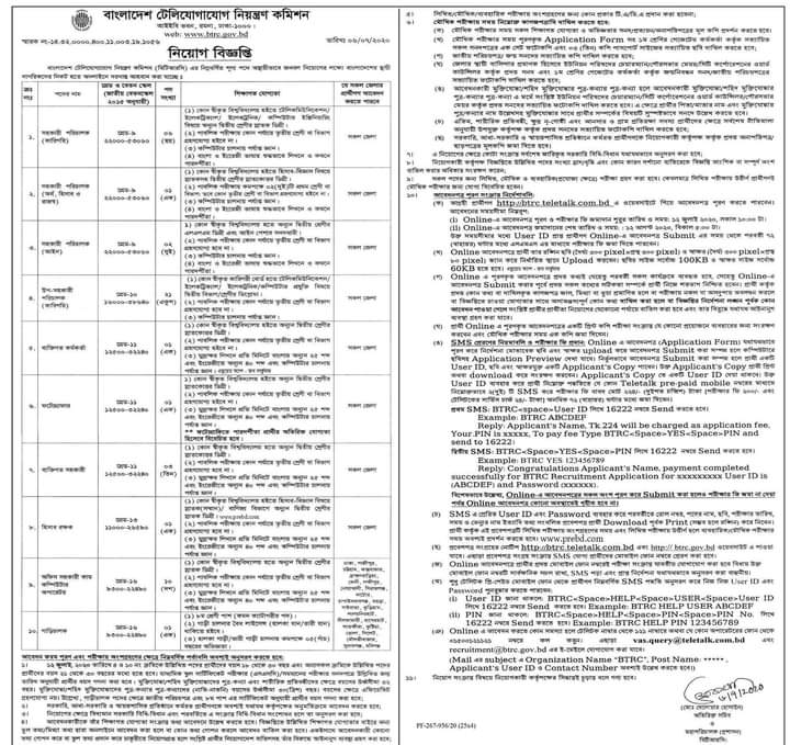 ☞☞ বিস্তারিতঃ http://www.btrc.gov.bd/sites/default/files/BTRC%20Recruitment%20Circular-2020.pdf