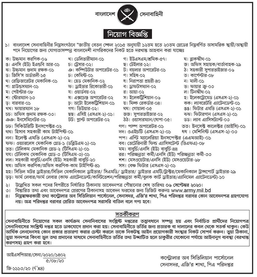 ☞☞ আবেদনের সময়সীমাঃ ১৩-০৮-২০২০ ইং।