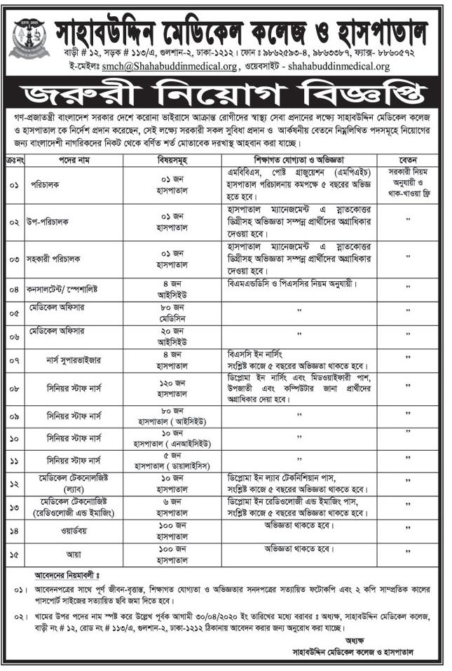 আবেদনের শেষ তারিখঃ ২০ জুলাই ২০২০